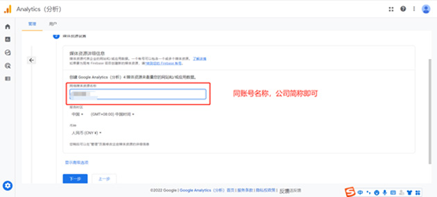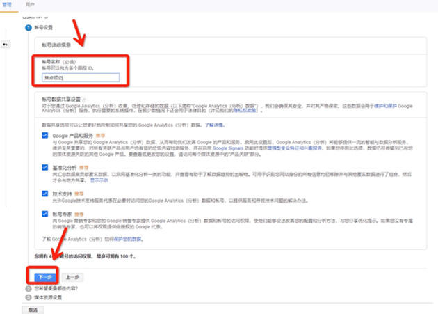 3、輸入賬號(hào)名稱:在創(chuàng)建賬號(hào)時(shí),您需要輸入賬號(hào)名稱(中文即可,最少 3 個(gè)漢字),并單擊“下一步”。(如下圖所示)