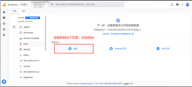 5、跳轉(zhuǎn)頁面,點(diǎn)擊網(wǎng)站:在創(chuàng)建賬號(hào)后,您將跳轉(zhuǎn)至一個(gè)頁面,在該頁面上,您需要點(diǎn)擊“網(wǎng)站”。(如下圖所示)