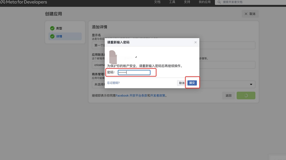 然后,F(xiàn)acebook會要求我們驗證密碼并提交。大家可別忘了自己的Facebook密碼哦?。ㄕ埧聪聢D)