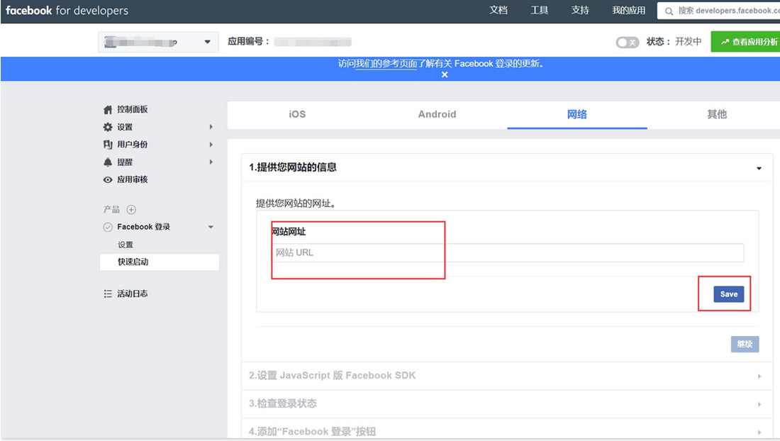 選擇網絡后,我們需要填入網絡網址并點擊“save”,然后再點擊“繼續(xù)”。到這里,我們的應用就創(chuàng)建好啦!