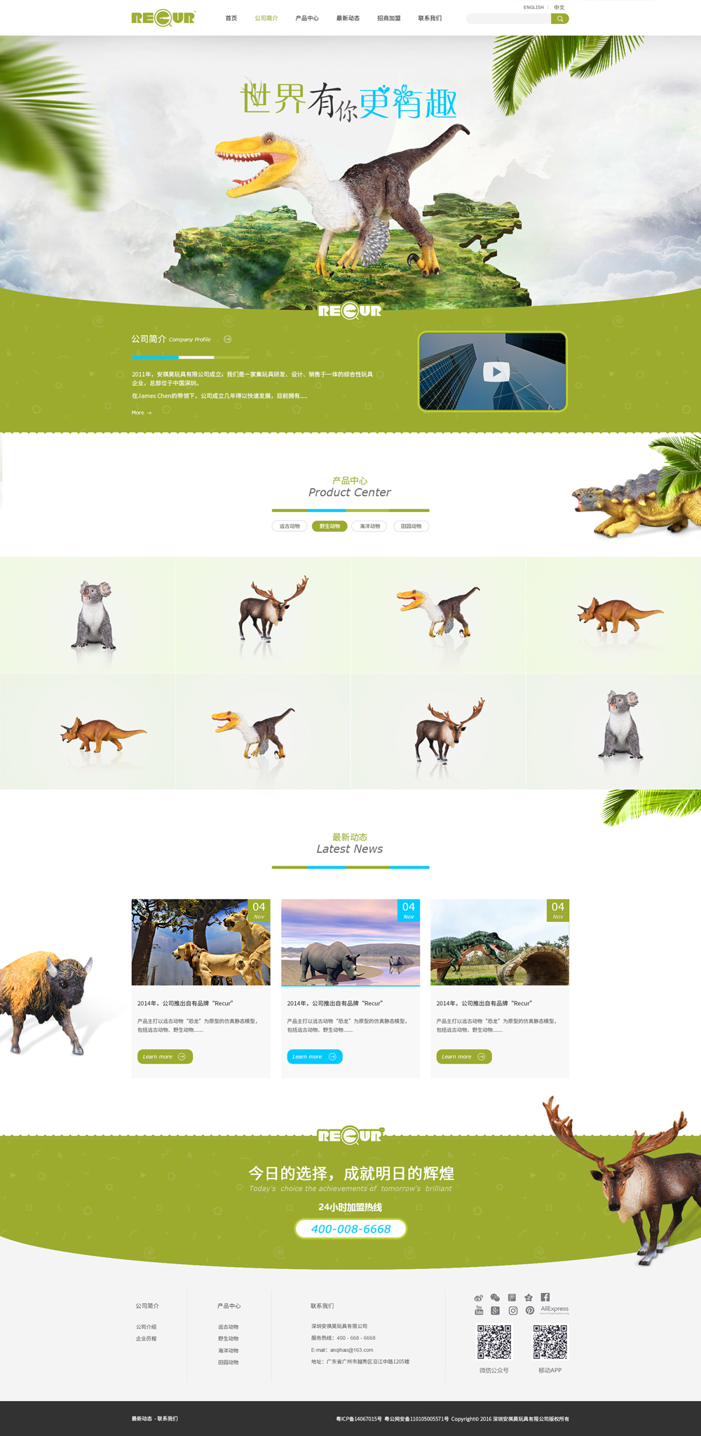 2014年,公司推出自有品牌“Recur”,產(chǎn)品主打以遠(yuǎn)古動(dòng)物“恐龍”為原型的仿真靜態(tài)模型,包括遠(yuǎn)古動(dòng)物、野生動(dòng)物、海洋動(dòng)物、農(nóng)場動(dòng)物等幾大系列,產(chǎn)品設(shè)計(jì)的理念“品質(zhì)、安全、愛心自然、快樂”,力求通過仿真模型“近距離的接觸”,培養(yǎng)兒童對(duì)自然生命的認(rèn)知,從小對(duì)地球生態(tài)、環(huán)境的重視,同在一片藍(lán)天下,與自然界其它生命體和諧共處方能生生不息,這也是我們品牌的核心價(jià)值!