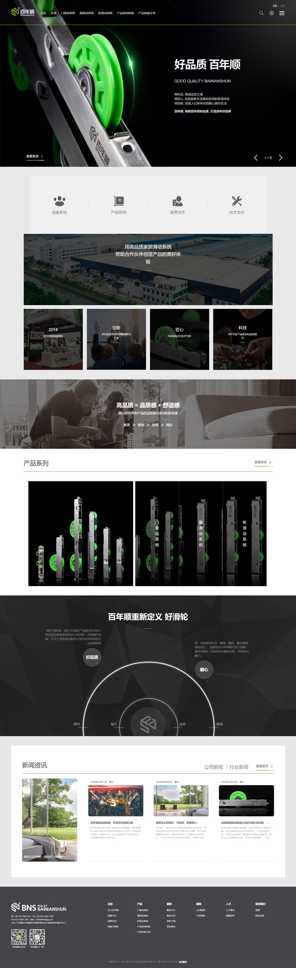 百年順堅(jiān)持以高品質(zhì)家居滑動(dòng)系統(tǒng)幫助合作伙伴創(chuàng)造產(chǎn)品的美好體驗(yàn),讓空間滑動(dòng)舒適體驗(yàn)走進(jìn)70億人家庭為己任,做合作伙伴最理想且誠信可靠的供應(yīng)商,并傾力打造成為行業(yè)領(lǐng)先品牌,用滑輪連接理想生活世界,讓百年順品牌沖出國門、走向全球。