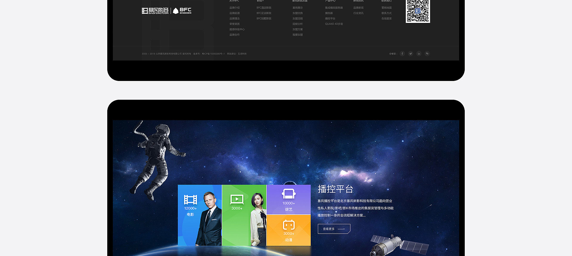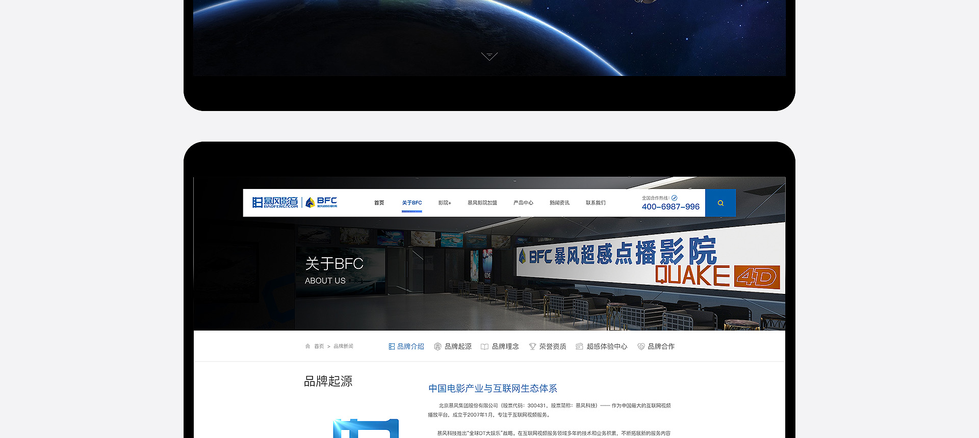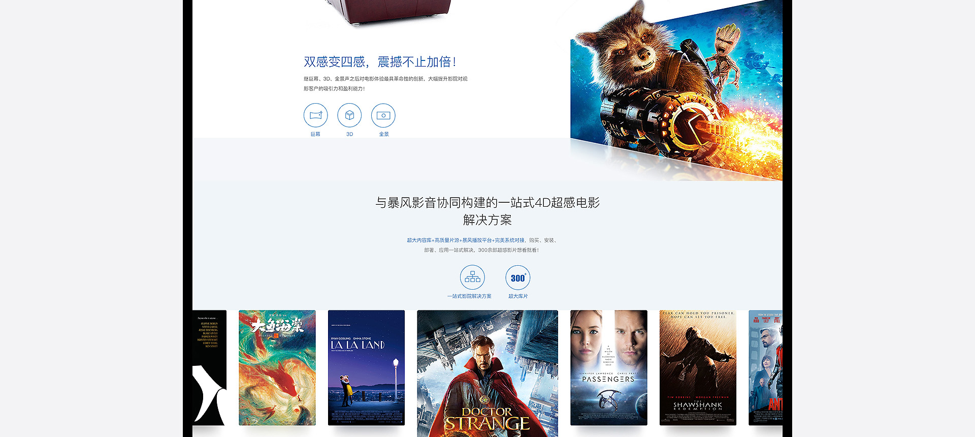 依托暴風(fēng)科技品牌、強(qiáng)大版權(quán)儲備和三億線上觀影用戶,BFC暴風(fēng)超感影院是面向追求極致感官體驗的觀影人群推出的高端品牌。BFC暴風(fēng)超感影院以全廳杜比全景聲音響、專業(yè)聲學(xué)設(shè)計、高亮3D投影和QUAKE超感沙發(fā)等獨家研發(fā)的產(chǎn)品為核心特色,獲得更舒適、更震撼觀影體驗的極致享受的視聽服務(wù)。 BFC暴風(fēng)超感影院秉承“通過...
