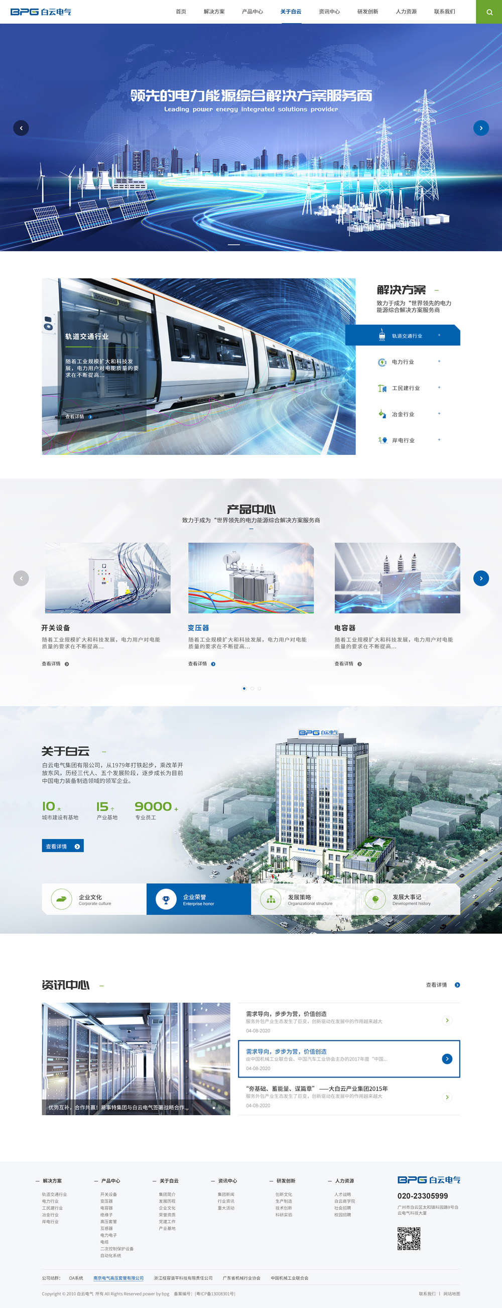 白云電氣于1988年開始專注于電力裝備制造領(lǐng)域,緊緊以“百年的白云、世界的白云”的愿景為牽引,以民族電力裝備振興為己任,三代人專心專注于電力能源領(lǐng)域毫不動(dòng)搖,不斷完善產(chǎn)品鏈,逐步發(fā)展成為以廣州為總部,在廣州、南京、桂林、杭州、濟(jì)南、南昌等10個(gè)地區(qū)建有15個(gè)產(chǎn)業(yè)基地的跨區(qū)域產(chǎn)業(yè)集團(tuán),員工總數(shù)一萬余人,集團(tuán)及旗下企業(yè)產(chǎn)品和服務(wù)涵蓋了發(fā)電、輸電、變電、配電、用電、電能質(zhì)量治理、自動(dòng)化控制、數(shù)字運(yùn)營服務(wù),電壓等級(jí)覆蓋0.4kV-1100kV,是國內(nèi)同行業(yè)產(chǎn)品鏈最全的企業(yè)之一,并成為國家電網(wǎng)、南方電網(wǎng)、城市軌道交通、核電及多家行業(yè)知名企業(yè)、重大工程項(xiàng)目的核心電力裝備及控制系統(tǒng)供應(yīng)商。