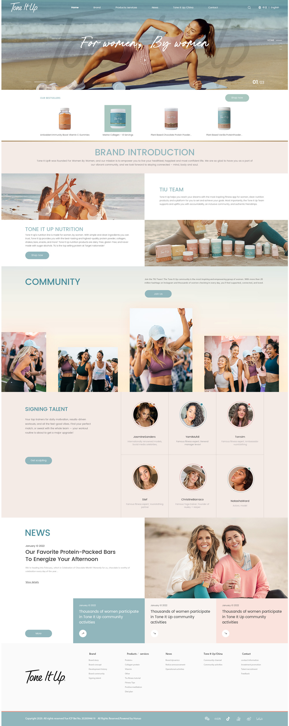 Tone It Up 通過激勵人心的女性健身訓練、天然純凈的營養(yǎng)產(chǎn)品,以及共同揮灑汗水、彼此鼓舞的女性社區(qū)等,幫助女性同胞們實現(xiàn)自己的目標與夢想。最重要的是,Tone It Up團隊富有責任感,通過包容的社區(qū)和真誠的友誼來支持和提升彼此。