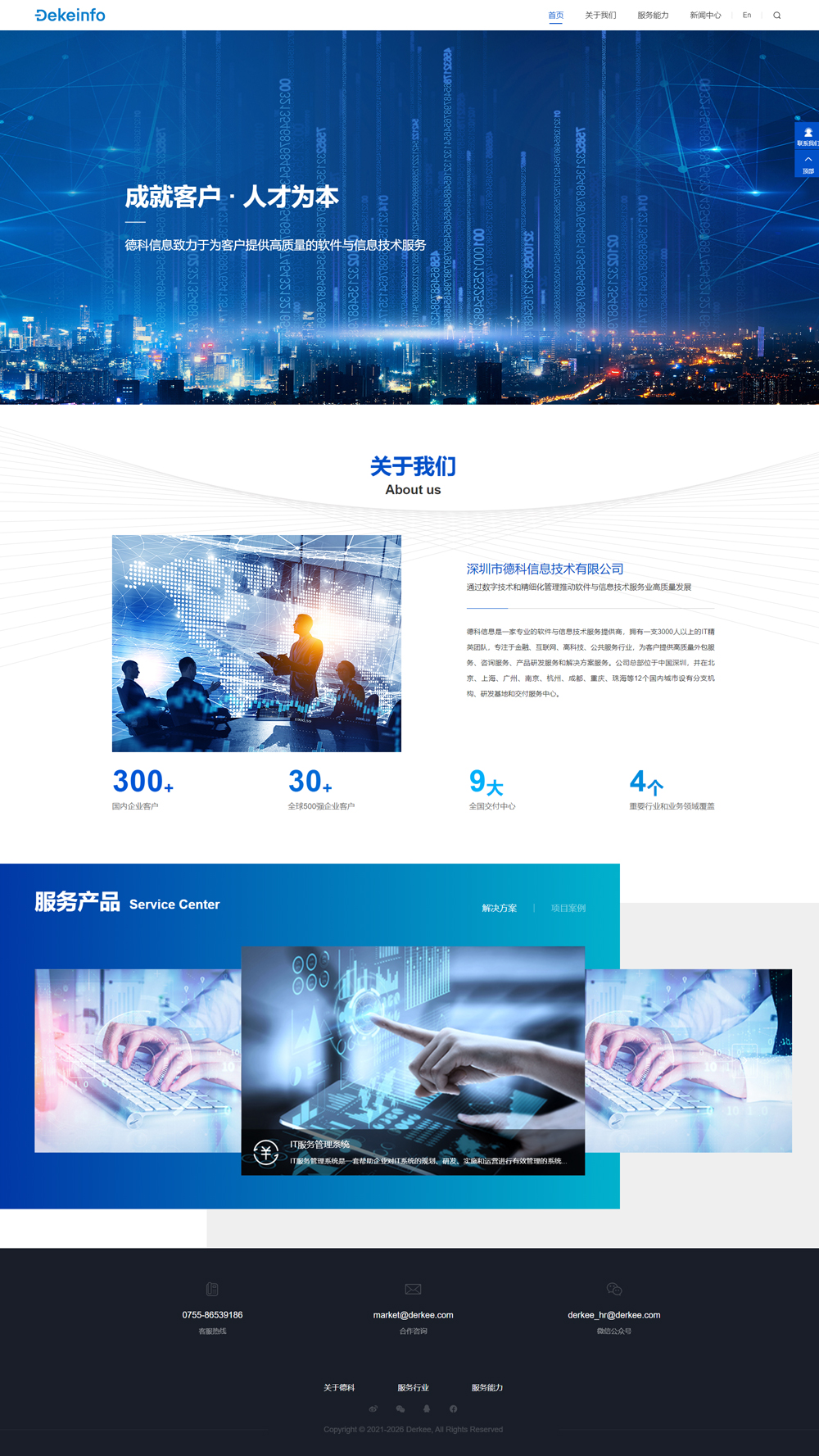 深圳市德科信息技術(shù)有限公司是一家專業(yè)的軟件與信息技術(shù)服務(wù)提供商,擁有一支3000人以上的IT精英團(tuán)隊(duì),專注于金融、互聯(lián)網(wǎng)、高科技、公共服務(wù)行業(yè),為客戶提供高質(zhì)量外包服務(wù)、咨詢服務(wù)、產(chǎn)品研發(fā)服務(wù)和解決方案服務(wù)。公司總部位于中國(guó)深圳,并在北京、上海、廣州、南京、杭州、成都、重慶、珠海等12個(gè)國(guó)內(nèi)城市設(shè)有分支機(jī)構(gòu)、研發(fā)基地和交付服務(wù)中心。