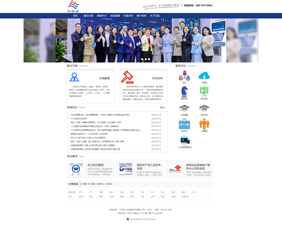 廣州市互諾計(jì)算機(jī)科技有限公司(簡(jiǎn)稱:互諾科技)成立于2005年,是成熟的整合式互聯(lián)網(wǎng)應(yīng)用服務(wù)商,廣東省認(rèn)證“雙軟”及“高新技術(shù)”企業(yè)。多年來始終致力于創(chuàng)造專業(yè)化、個(gè)性化、品牌化的網(wǎng)絡(luò)服務(wù)。在本次與廣州紅海人力資源集團(tuán)股份有限公司的項(xiàng)目合作中,我們按照流程針對(duì)廣州紅海人力資源集團(tuán)股份有限公司所在的人力資源...