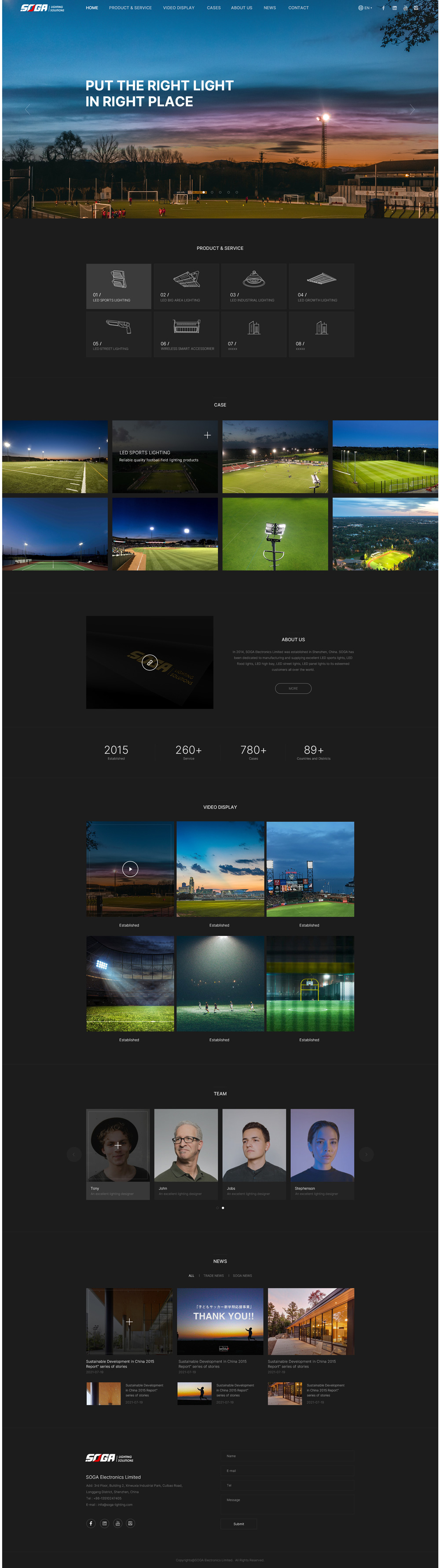 SOGA Lighting has been designing and manufacturing patented LED Fixture since 2015. We focus on providing the sustainable LED fixtures and lighting solutions of Sports lighting, Big area lighting, Industrial lighting etc. to our worldwide clients.