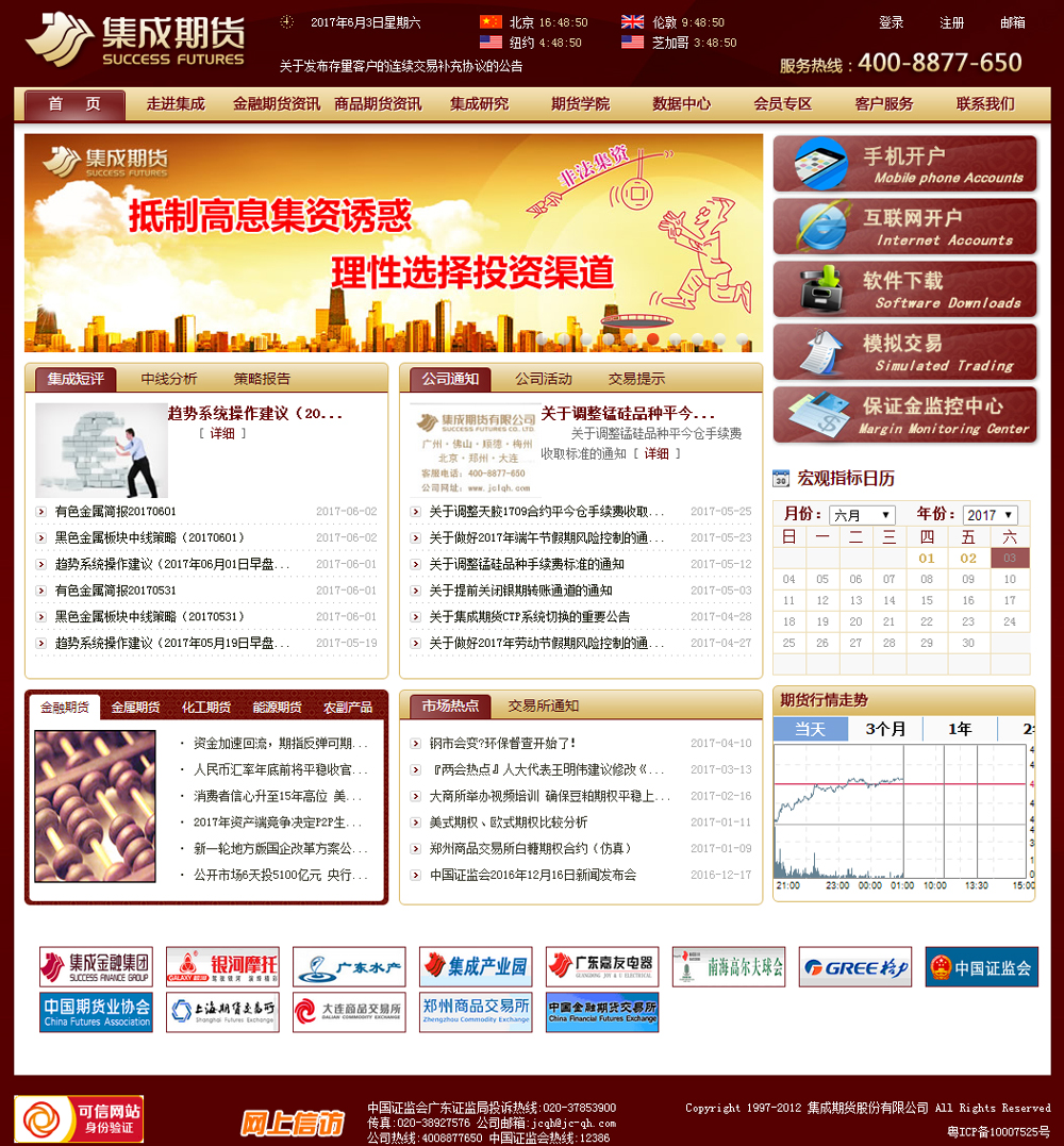 公司視客戶為上帝,以信譽(yù)為生命,致力于期貨市場功能的積極發(fā)揮,為客戶提供投資組合與風(fēng)險(xiǎn)管理工具。公司衷心地希望與廣大投資者合作,共創(chuàng)中國期貨市場的輝煌。