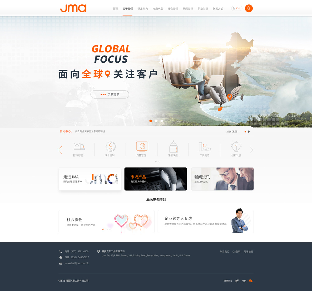 精美汽車工業(yè)有限公司,簡稱“JMA”,成立于1998年。董事長陳偉聰先生秉承父親陳禮信先生的塑料電鍍技術及嚴謹務實的工作作風,活用表面處理技術和資源,以誠信務實的作風、敬業(yè)創(chuàng)新的態(tài)度、追求卓越的精神,成功在汽車零部件行業(yè)中開拓新業(yè)務。 伴隨著汽車市場的前進發(fā)展腳步,JMA團隊走過了二十年的創(chuàng)業(yè)拼搏歷程...