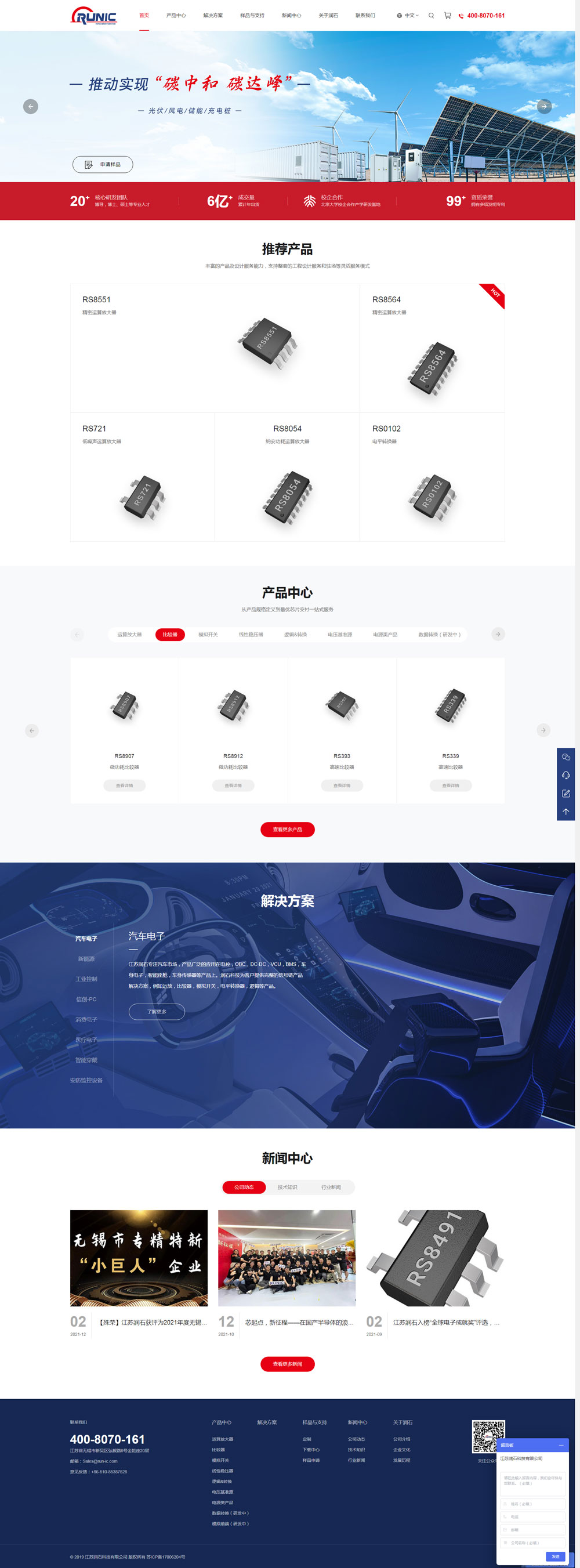 江蘇潤石科技有限公司是一家專注于高性能、高品質模擬/混合信號集成電路研發(fā)和銷售的高科技半導體企業(yè) 。 主要產品包括精密運算放大器、高速運算放大器、通用運算放大器、低噪聲運算放大器、微功耗運算放大器、微功耗比較器、模擬開關、電源管理、數據轉換器、電平轉換、電壓基準源等,廣泛用于工業(yè)控制、醫(yī)療設備、安...