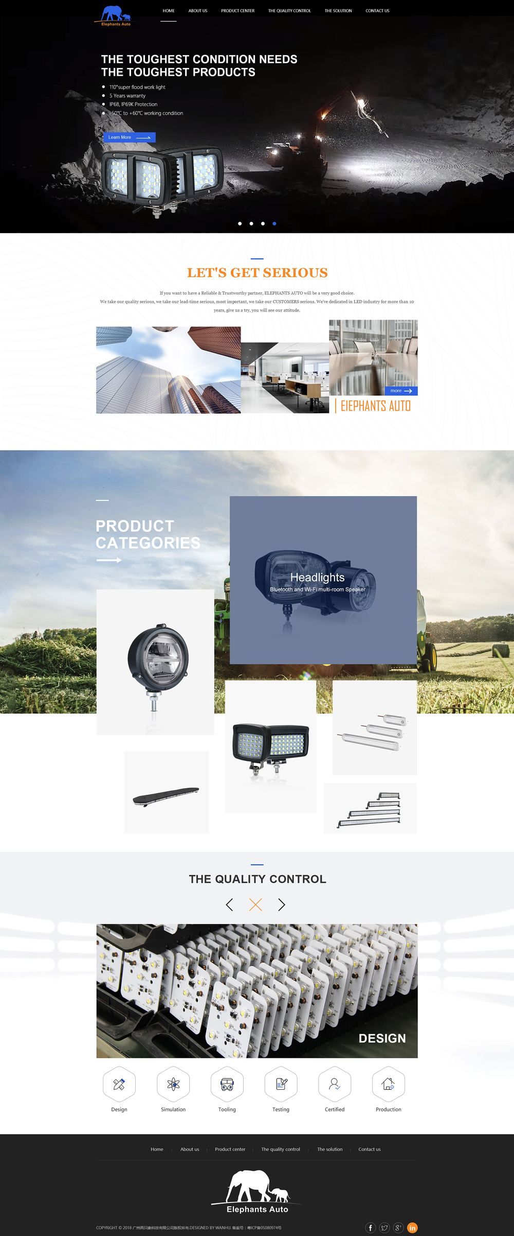 Elephants Auto is a diversified enterprise providing scientific and technological innovation, energy applications, committed to the improvement of the working condition by energy-saving technologies, efficient lighting, and green energy solutions. Elephants Auto insists on integrating the advanced technology and professional design into every solution and blending the best service with the highest quality products, aiming at each client's satisfaction. Our company specialize in LED LED Lighting for agriculture industry, construction machinery, commercial vehicle etc.