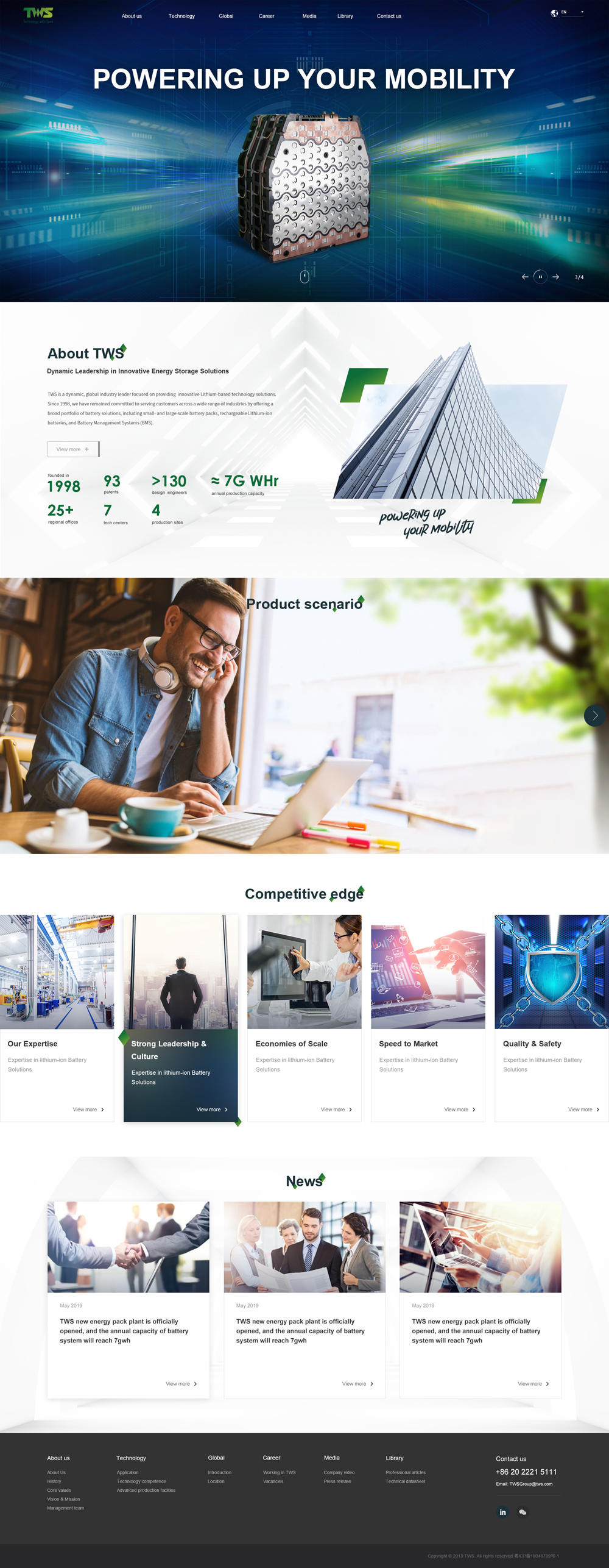 TWS, a dynamic and global industry leader focused on providing innovative Lithium-based battery technology solutions, was founded in 1998. With over 2 decades of development, we have now grown to over 2,500 global employees to service the worldwide markets. TWS always follows the practice of customer-focused values and we're committed to providing innovative solutions in response to the rapid growth of new lithium-ion battery applications.