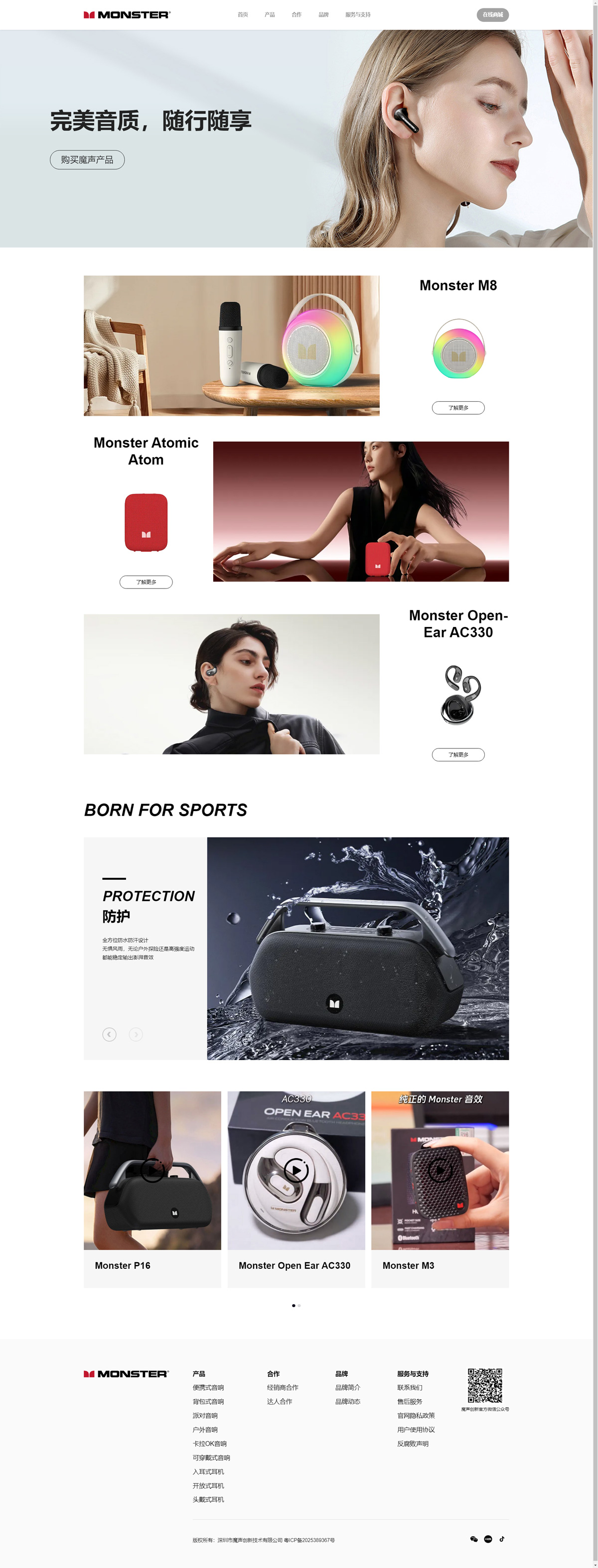 MONSTER是全球領(lǐng)先的高品質(zhì)耳機(jī)制造商,為家庭娛樂、音頻、家庭影院、手機(jī)、電腦和游戲提供高級(jí)解決方案。魔聲公司由總裁李美圣(Noel Lee)于1979年創(chuàng)立,致力于打造更完美的音樂聲效的產(chǎn)品。在魔聲線材品牌的引領(lǐng)下,公司在高級(jí)音頻、視頻和數(shù)據(jù)連接性解決方案領(lǐng)域中引領(lǐng)潮流,在創(chuàng)新方面始終保持領(lǐng)先,申請(qǐng)了350多項(xiàng)美國及世界專利,還有100項(xiàng)正在研發(fā)過程中,并且在全球120多個(gè)國家銷售了6000多萬件產(chǎn)品。