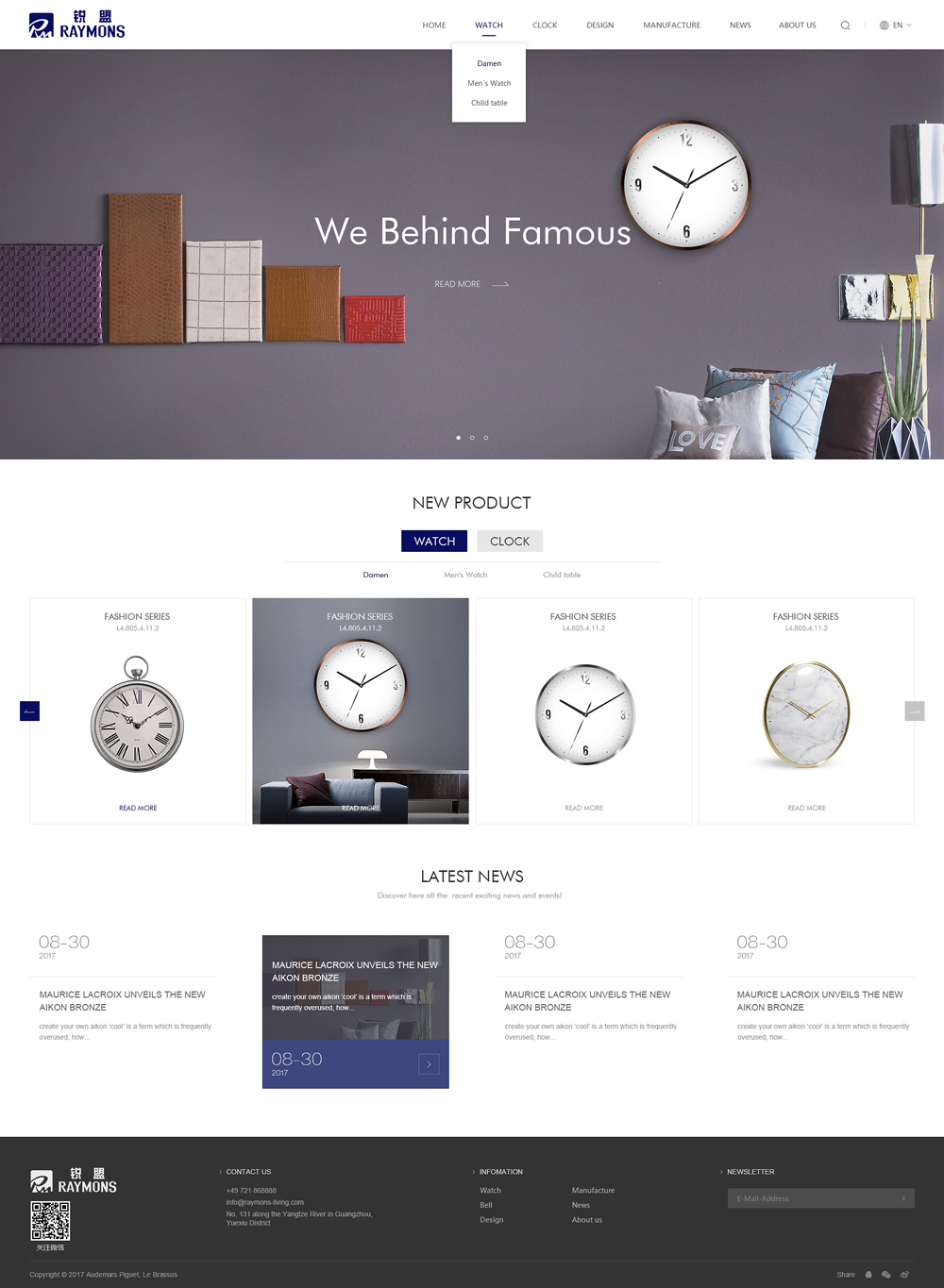 Guangzhou Raymons Group, we are founded in 2007. Medium size assembly factory with a large office includes sales and product development teams. We can respond quickly to all kinds of watch and clock orders, including sample design and custom OEM projects. Our company has grown steadily in the last 10 years and has proven success in all aspects of watch and clock business. The company's annual turnover is now USD 10 million and growing steadily each year.