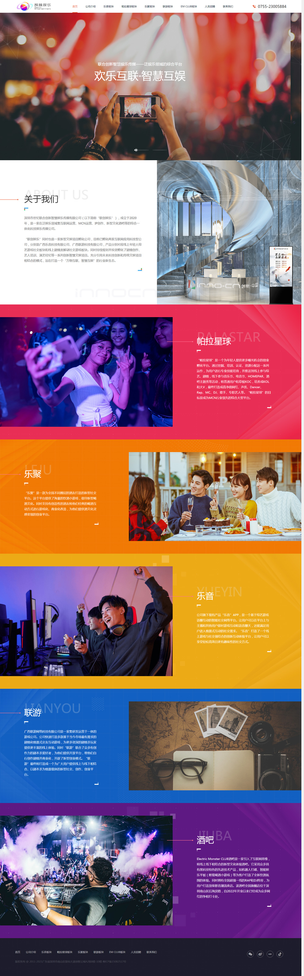 深圳市世紀(jì)聯(lián)合創(chuàng)新智慧娛樂傳媒有限公司(以下簡(jiǎn)稱“聯(lián)創(chuàng)娛樂”),成立于2020年,是一家在泛娛樂領(lǐng)域集互聯(lián)網(wǎng)運(yùn)營(yíng)、MCN運(yùn)營(yíng)、IP創(chuàng)作、新型文化酒吧等的綜合一體化科技娛樂傳媒公司。