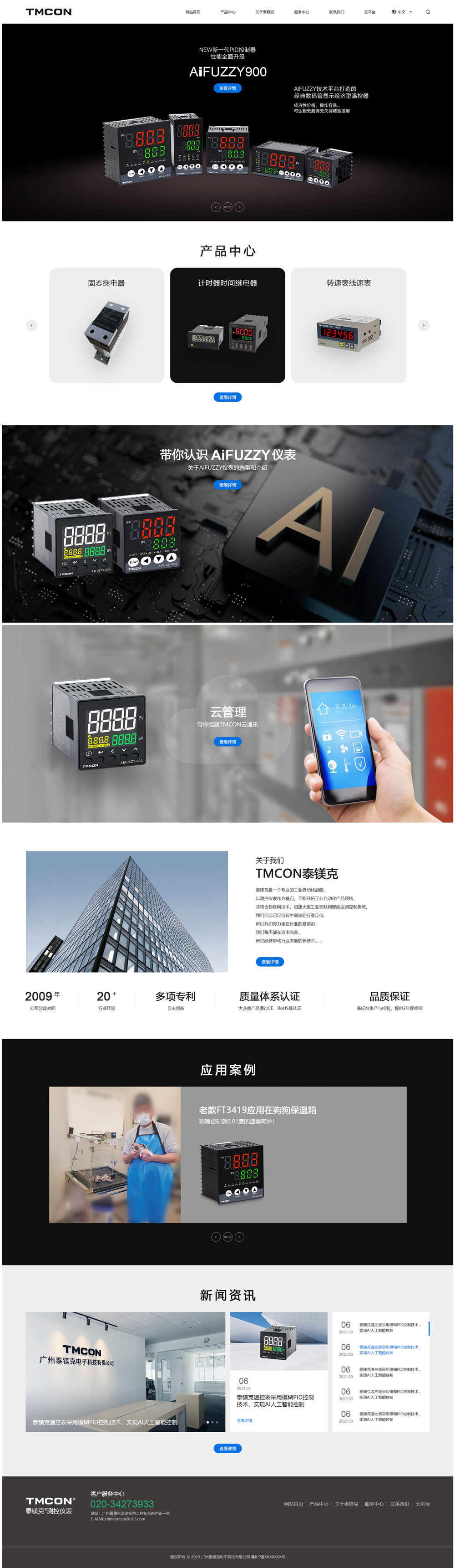 TMCON泰鎂克,是一個以專業(yè)生產(chǎn)銷售工業(yè)測控儀表起家的工業(yè)自動化品牌,憑借創(chuàng)始人在工業(yè)測控儀表行業(yè)多年的工作經(jīng)驗,于2003年在廣州建立研發(fā)實驗室,并于2009年成立廣州泰鎂克電子科技有限公司,憑借對于溫控儀表的豐富的研發(fā)經(jīng)驗,不斷完善基于AiFUZZY(已成功注冊為商標)人工智能模糊PID調節(jié)算法,開創(chuàng)了以溫控儀表為龍頭產(chǎn)品,不斷向工業(yè)自動化領域深耕并延伸,TMCON的優(yōu)勢之處在于從模具設計到軟件硬件設計都能夠做到自主把控,從而將精致不凡的理念從設計到生產(chǎn)能夠全程把控,打造出質感優(yōu)雅、性能卓越的產(chǎn)品,并將其運用于各種工業(yè)領域。目前主要產(chǎn)品包括:智能溫控器、調節(jié)器、計數(shù)器、計米器、時間繼電器、累時器、轉速表、線速表、電流、電壓表等,隨著我們在技術方面的不斷的積累和沉淀,并堅持以“品質立業(yè),客戶為先”的宗旨為導向,我們會在我們所處的行業(yè)中推陳出新,相信未來會有更多的優(yōu)質產(chǎn)品加入我們的產(chǎn)品庫。