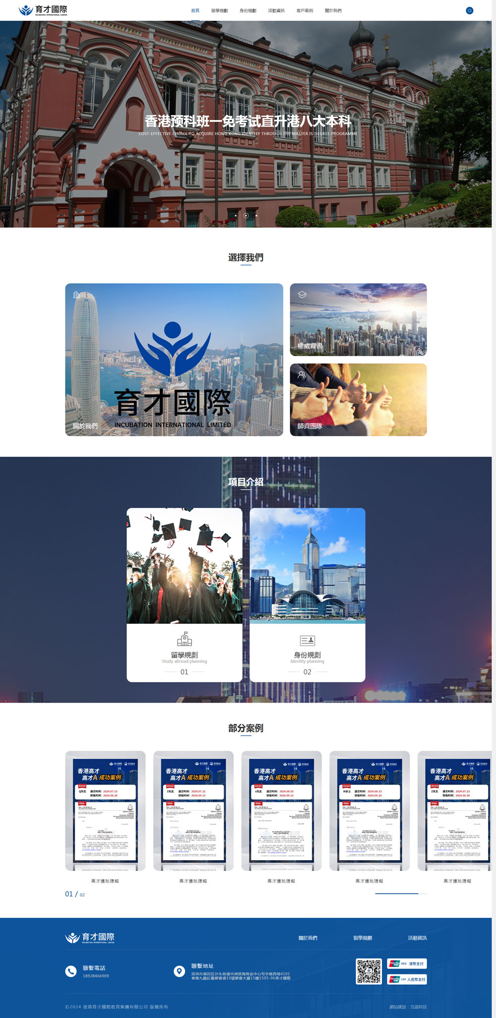 育才國(guó)際:全名香港育才國(guó)際教育集團(tuán)(Incubation International Limited),2015年於香港成立,總部位於香港九龍紅磡都會(huì)道10號(hào)都會(huì)大廈,是綜合性教育集團(tuán)。 現(xiàn)已分別在深圳、杭州、山東、內(nèi)蒙古等多座都市建立分公司,業(yè)務(wù)覆蓋全國(guó)50多個(gè)都市,團(tuán)隊(duì)近500人。 公司業(yè)務(wù)主要涉及身份規(guī)劃、教育兩大行業(yè)領(lǐng)域。