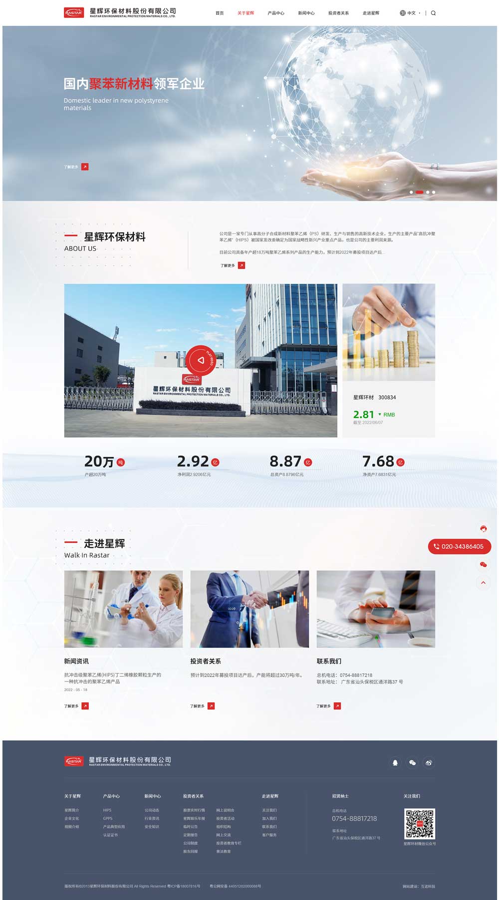 星輝環(huán)保材料是一家專門從事高分子合成材料聚苯乙烯(PS)研發(fā)、生產(chǎn)與銷售的高新技術(shù)企業(yè),經(jīng)過十幾年的行業(yè)積累和快速發(fā)展,目前公司具備年產(chǎn)35萬噸聚苯乙烯系列產(chǎn)品的生產(chǎn)能力,系技術(shù)水平較為領(lǐng)先的聚苯乙烯生產(chǎn)企業(yè),為國內(nèi)華南地區(qū)聚苯乙烯行業(yè)生產(chǎn)規(guī)模最大的公司。2022年1月,公司在深圳證券交易所創(chuàng)業(yè)板成功上市(股票簡稱:星輝環(huán)材;股票代碼:300834)。