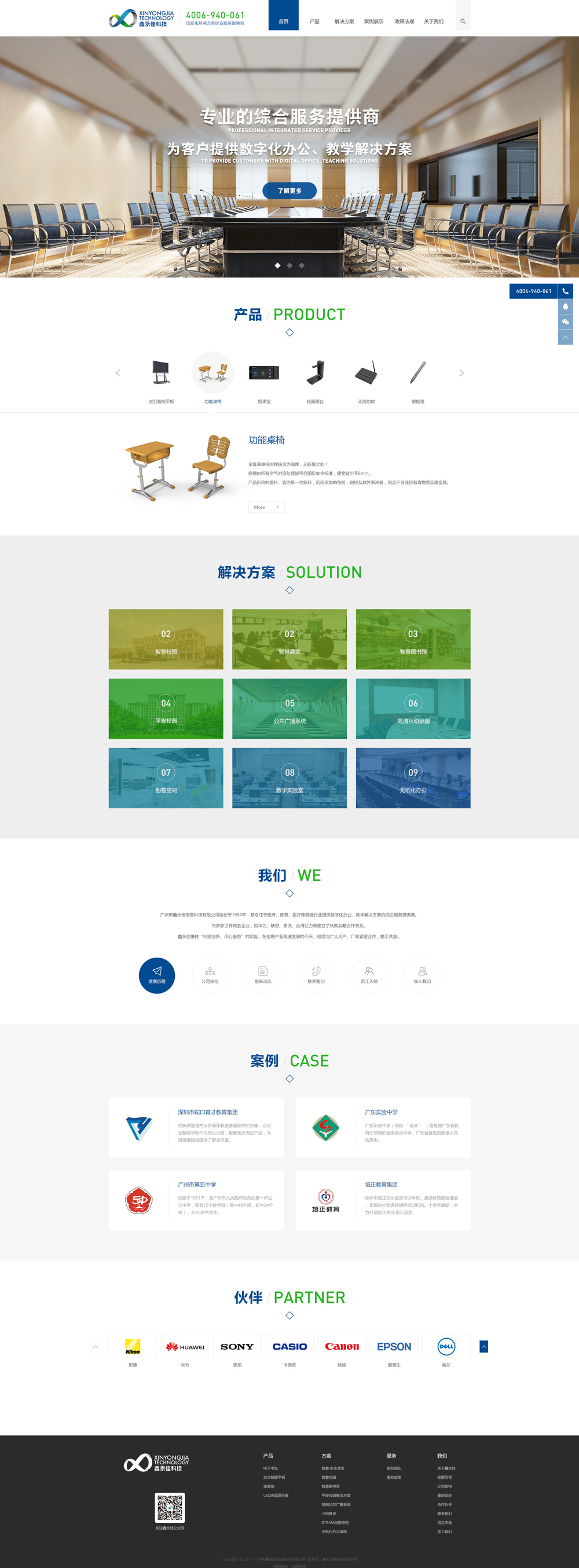 廣州市鑫永佳信息科技有限公司(簡(jiǎn)稱:“鑫永佳科技”),成立于1994年,是一家通過了ISO9001:2015質(zhì)量管理體系認(rèn)證,專業(yè)從事系統(tǒng)集成工作的高新科技公司,多年來專注為政府、醫(yī)療、教育等高端行業(yè)提供數(shù)字化辦公、教學(xué)解決方案等信息化綜合服務(wù)。