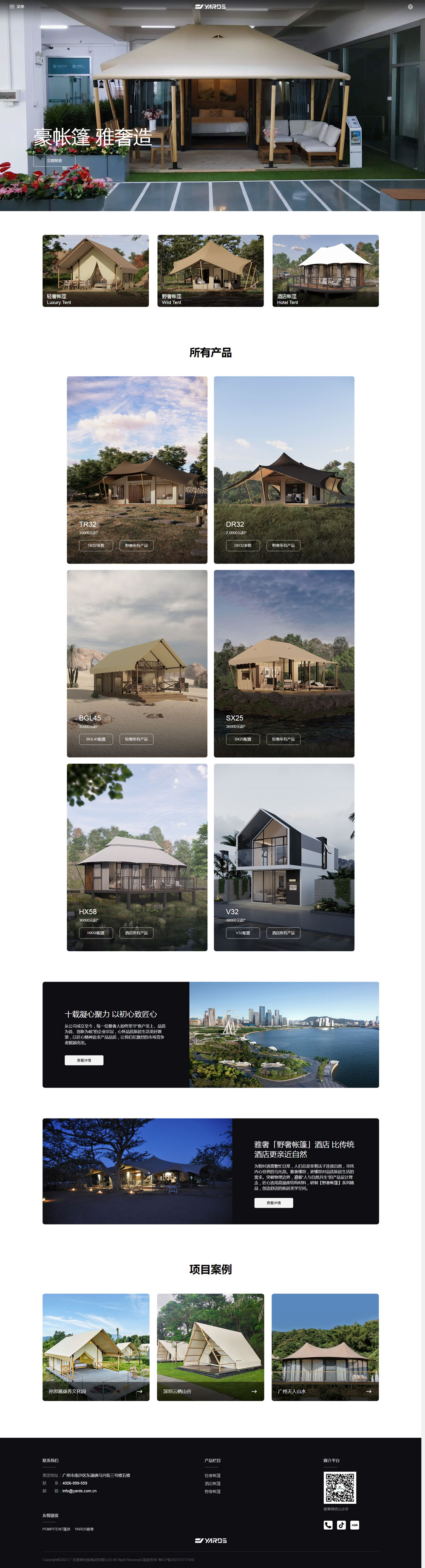 雅奢集團(tuán)多年堅(jiān)持自主研發(fā),培養(yǎng)了一支經(jīng)驗(yàn)豐富、知識(shí)全面的技術(shù)團(tuán)隊(duì),掌握著酒店帳篷行業(yè)核心技術(shù),取得了國(guó)家數(shù)十項(xiàng)發(fā)明專利。雅奢集團(tuán)陸續(xù)自主研制了酒店帳篷、球形帳篷、輕奢帳篷等多種酒店民宿帳篷建筑,目前已有35個(gè)篷房系列300個(gè)篷房單品。